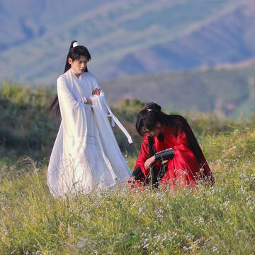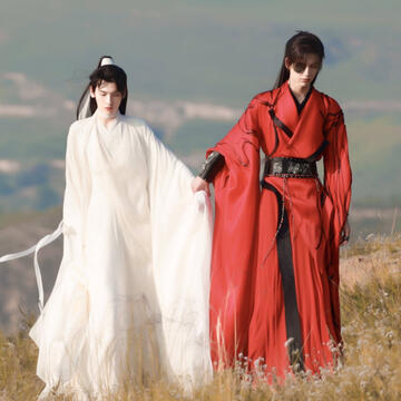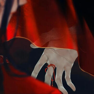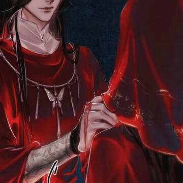 “Inadvertently, their eyes met. Hua Cheng still had Xie Lian’s right shoulder in his grasp, never having let go, as if he was holding him in his embrace. Looking from the outside, only two overlapping silhouettes could be seen within the veils of that step-litter; curled up together, inseparable. Within the red curtains, Hua Cheng smiled.”